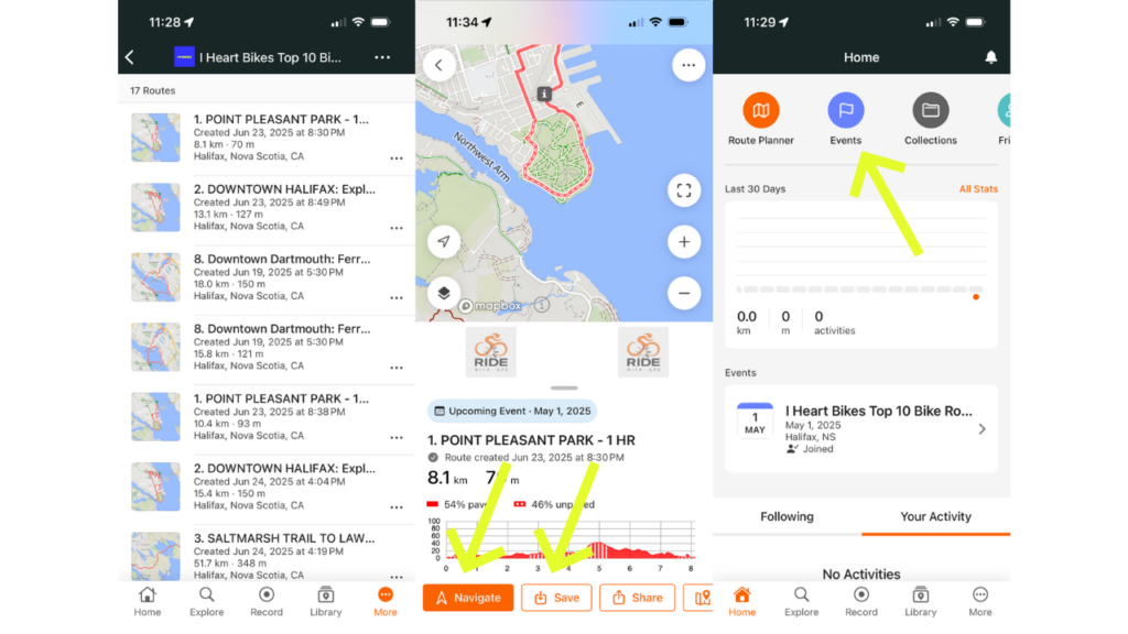 8. Once you are signed in you will be direct to the Events page which will now show you have RSVP’d to our Top 10 Routes in Halifax.