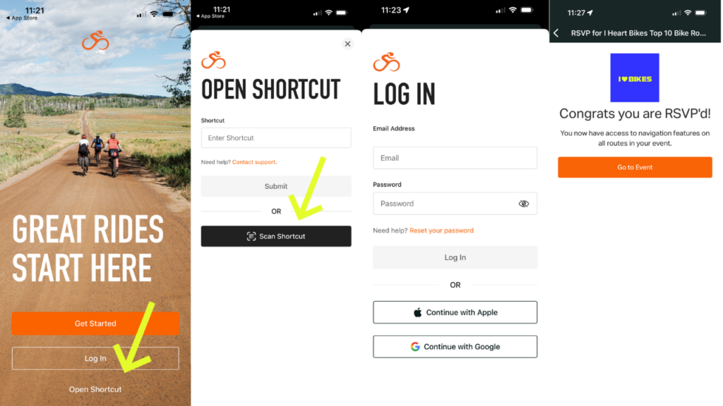 Download the “Ride with GPS” mobile app and enter shortcut